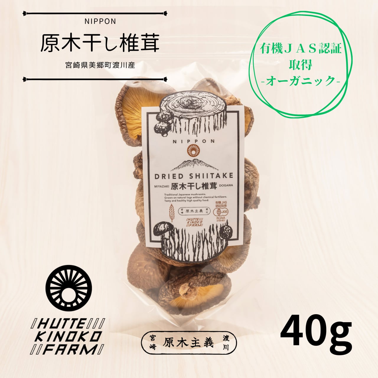 有機JAS認証を受けたヒュッテきのこファームのオーガニック原木干し椎茸。自然栽培と原木栽培にこだわり、生産から乾燥まで、昔ながら伝承される技法で作り上げています。